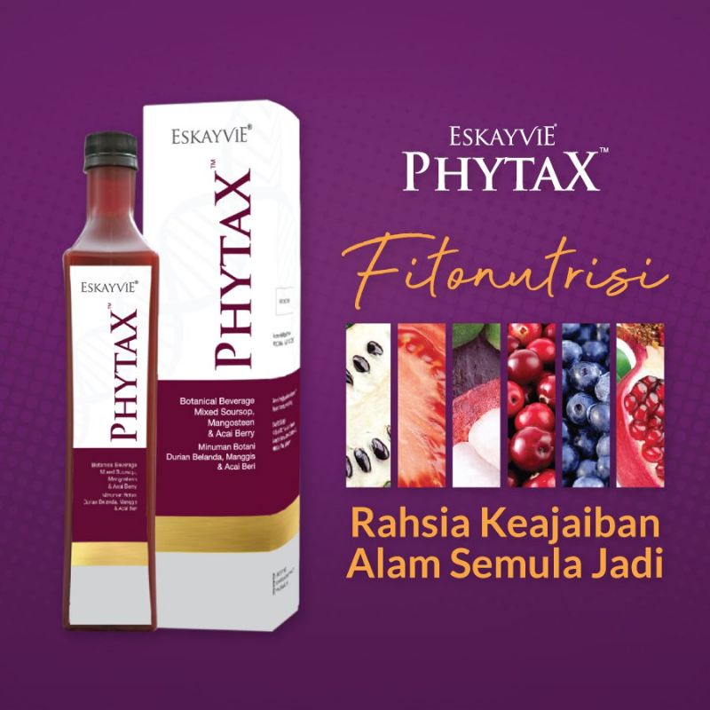 Khasiat Jus Phytax - Buy Jus Mamom Hope Jus Khasia. KHASIAT JUS KESIHATAN PHYTAX BY ESKAYVIE Melindungi menyokong kesihatan jantung. Eskayvie Phytax is a botanical drinks from synergy blends 12 extracts of phytonutrients such as Grape Seed Green Tea Pine Bark Pomegranate Soursop Cranberry Blue Berry Roselle Tomato Acai Berries Green Algae and Mangosteen.
